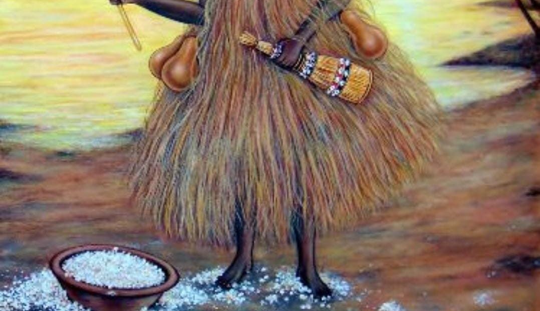 Era meu pai Omulu que de sua missão chegava, retornando a casa da mãe, seus tesouros ele buscava, pois ofertando flores pelo mundo, ele sempre andava.