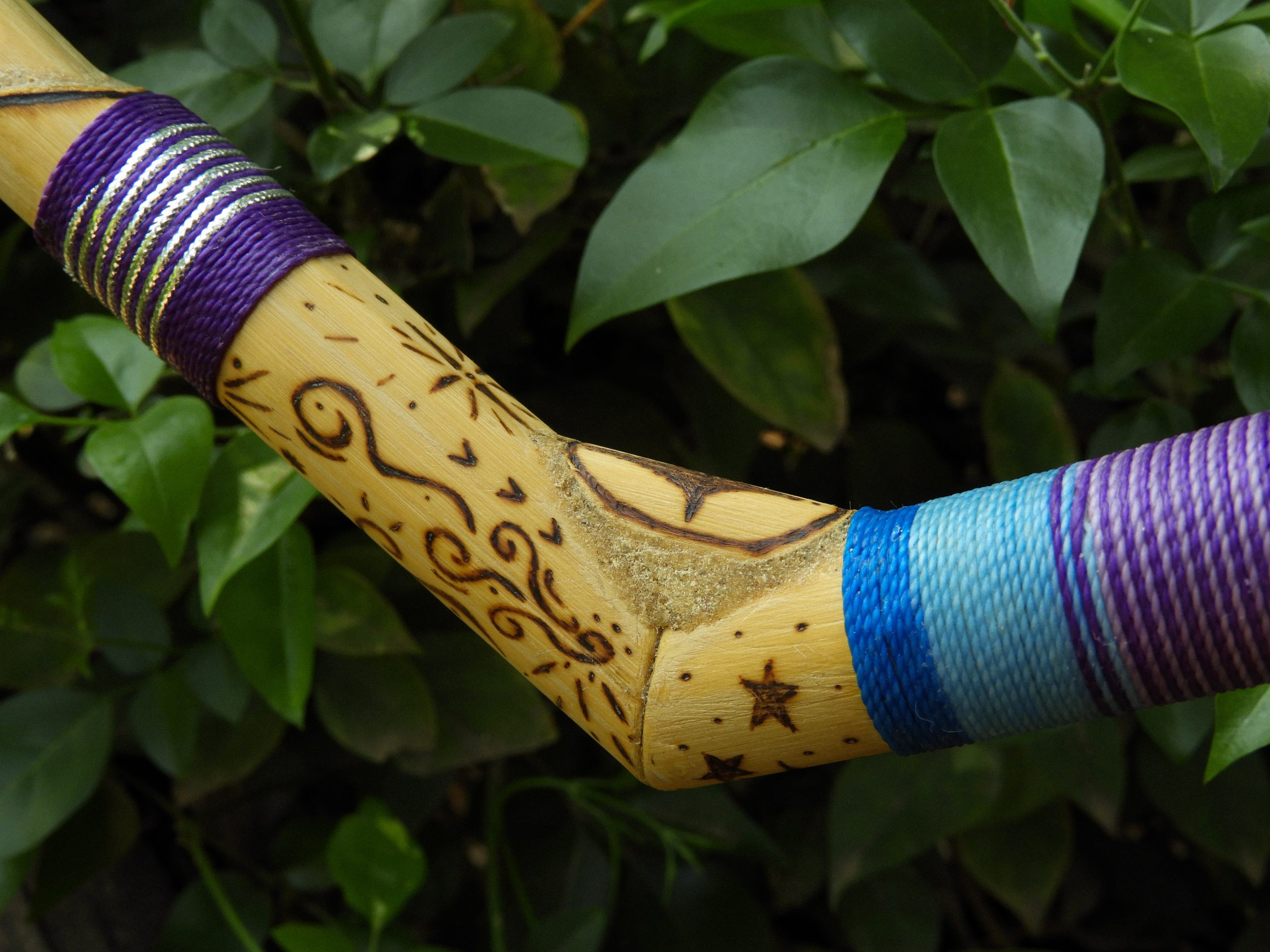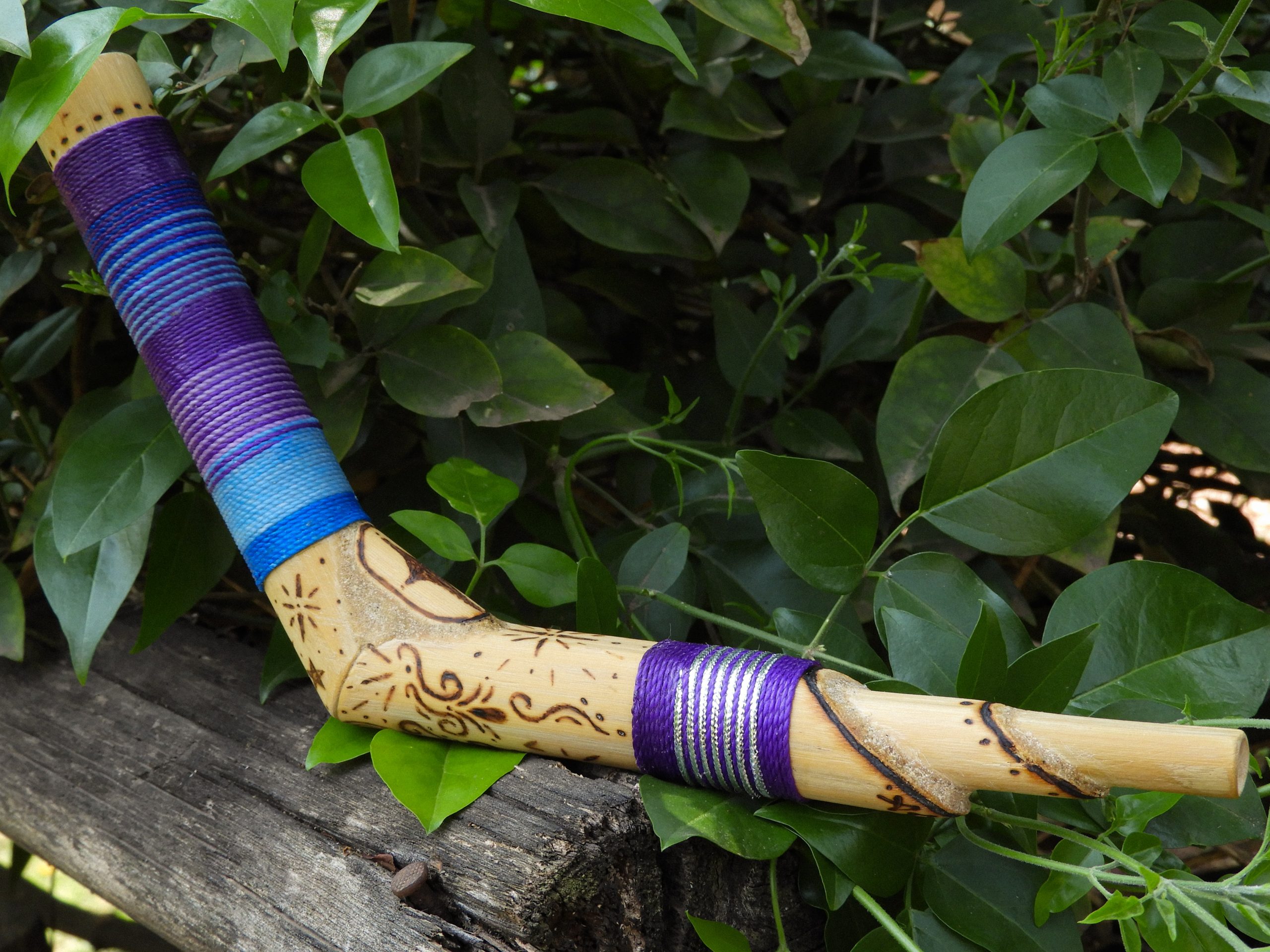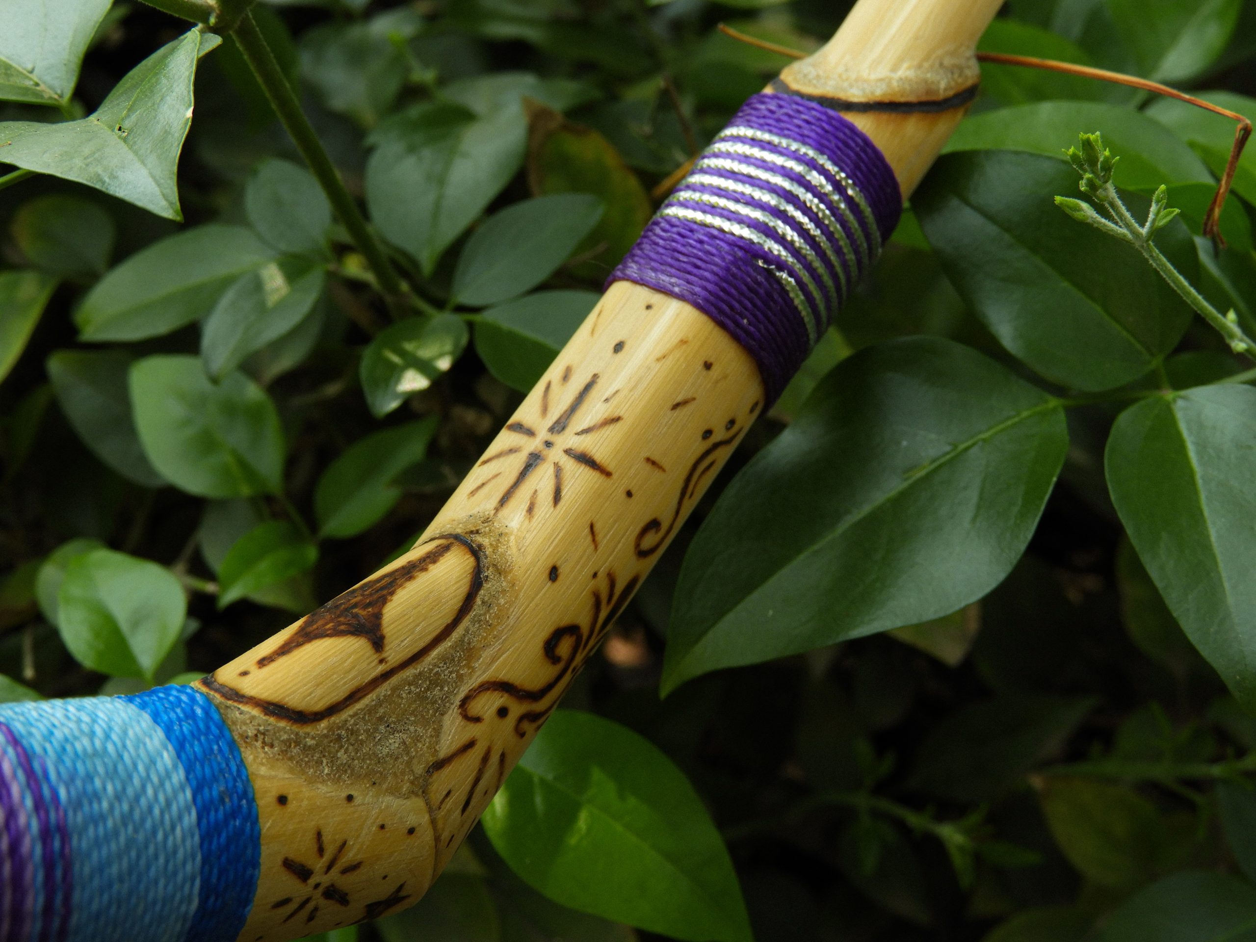 Tepi feito com bambu tratado, linha encerada e desenhos livres feitos em pirografia.