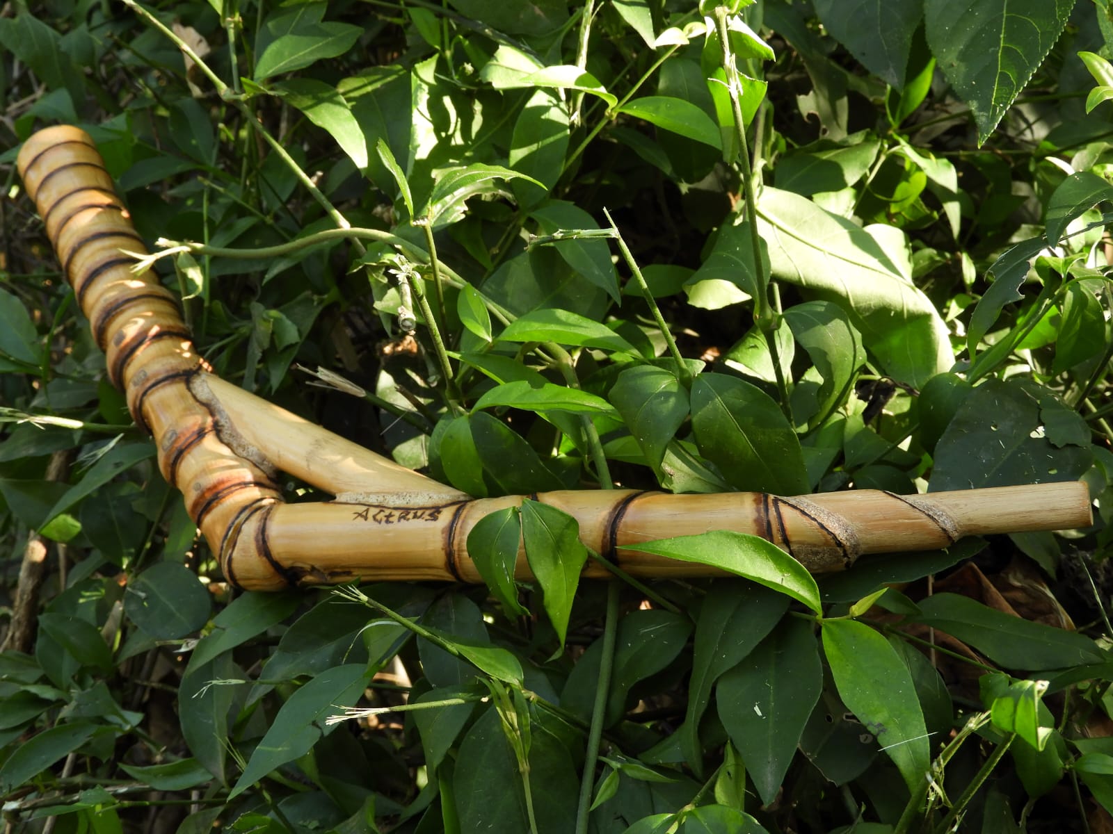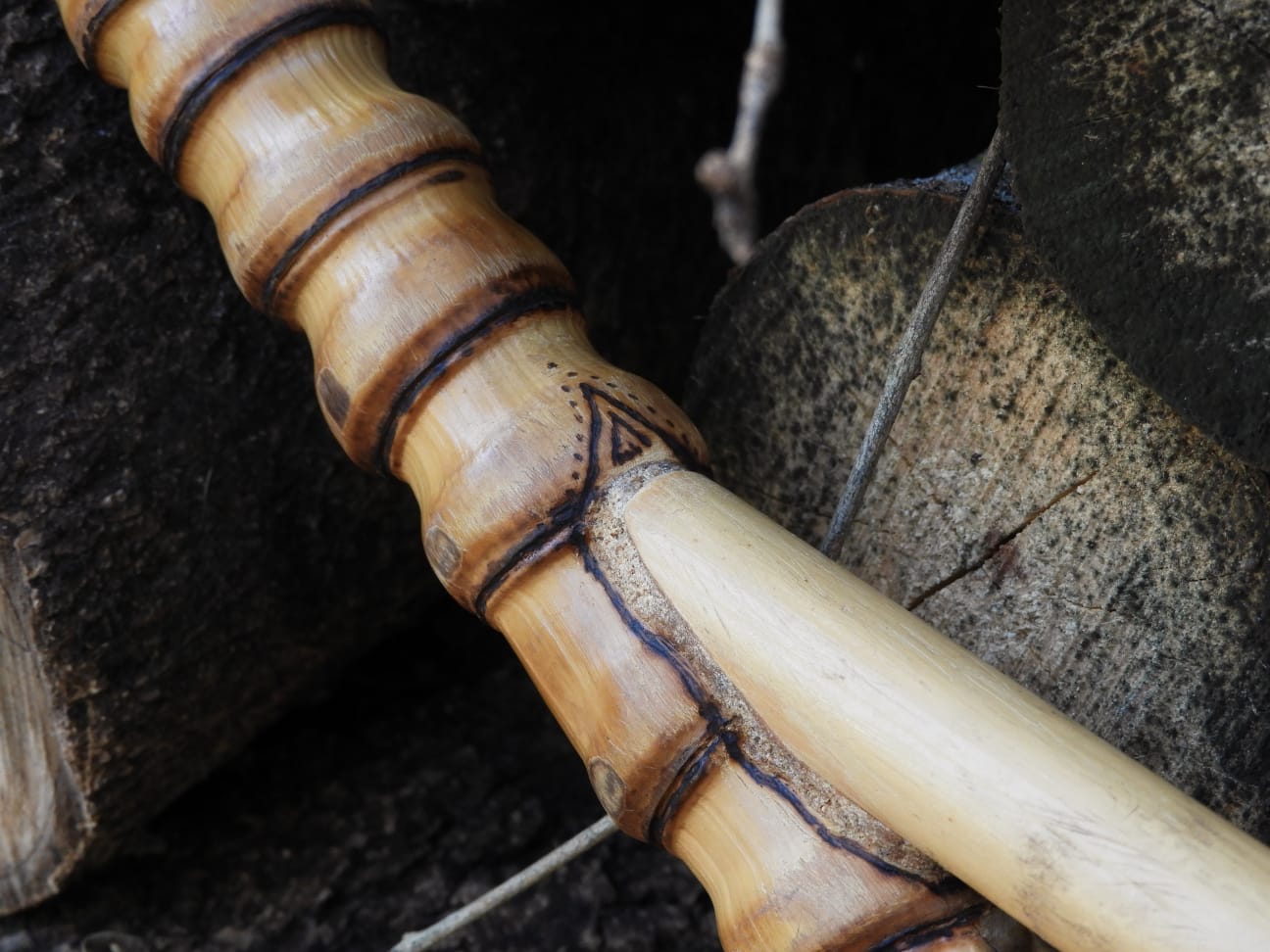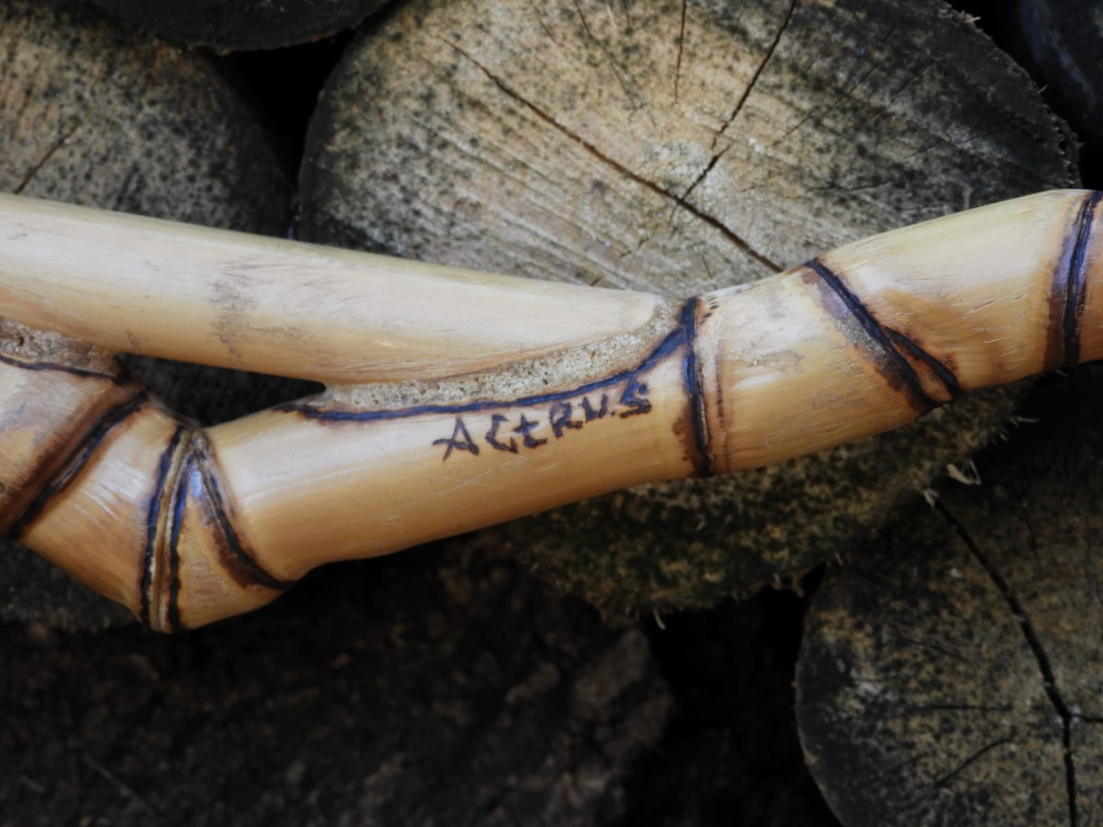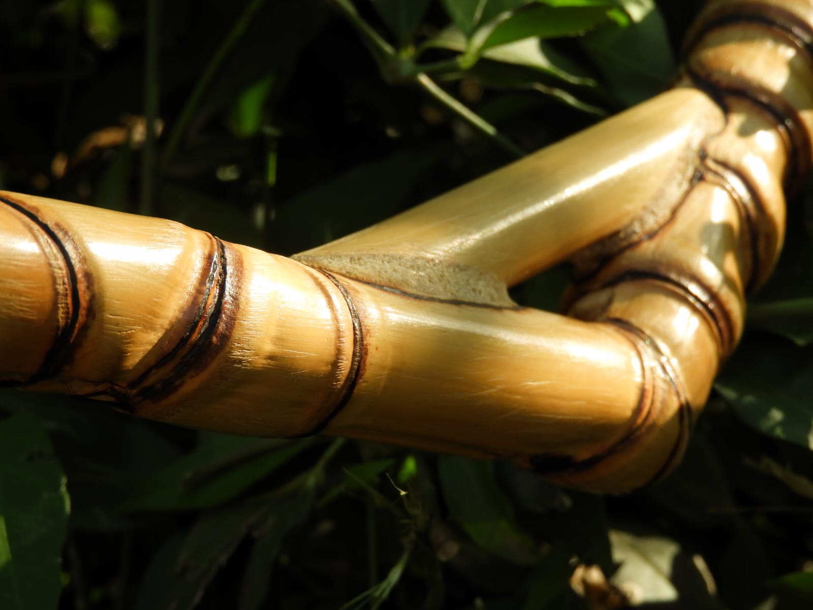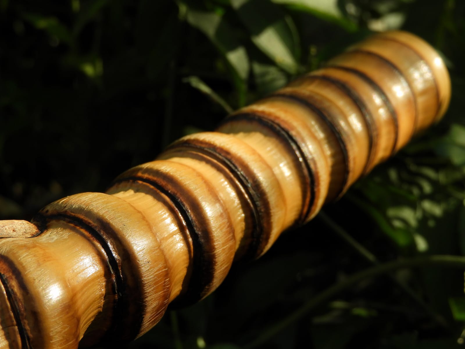 Tepi feito com bambu tratado e detalhes feitos em pirografia.